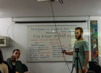 Com o apoio da RIOFILME e com a parceria da ONG Ser Cidadão, a divulgação das Oficina de Cinema em Santa Cruz foi feita pelas redes sociais visando a inscrição de moradores do bairro através de um formulário virtual, recebemos um total de 183 inscrições para as 25 vagas disponíveis. O curso foi dividido em dois módulos, sendo o primeiro voltado à mentorias com profissionais do cinema e Arte Educadores do projeto, e o segundo voltado à parte prática da produção dos curtas. Foram 12 encontros de 4 horas de duração cada.